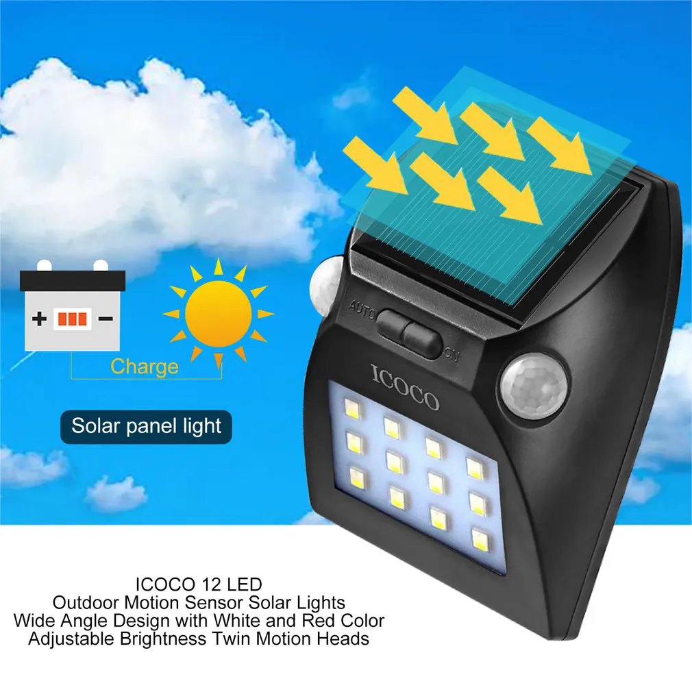 Special Offer 12 LED Solar Powered Licht Dual Kopf PIR Motion Sensor Weiß Rot Wand Lampe Nacht Licht Für Outdoor Garten decor Verkauf Discount 20% Today!