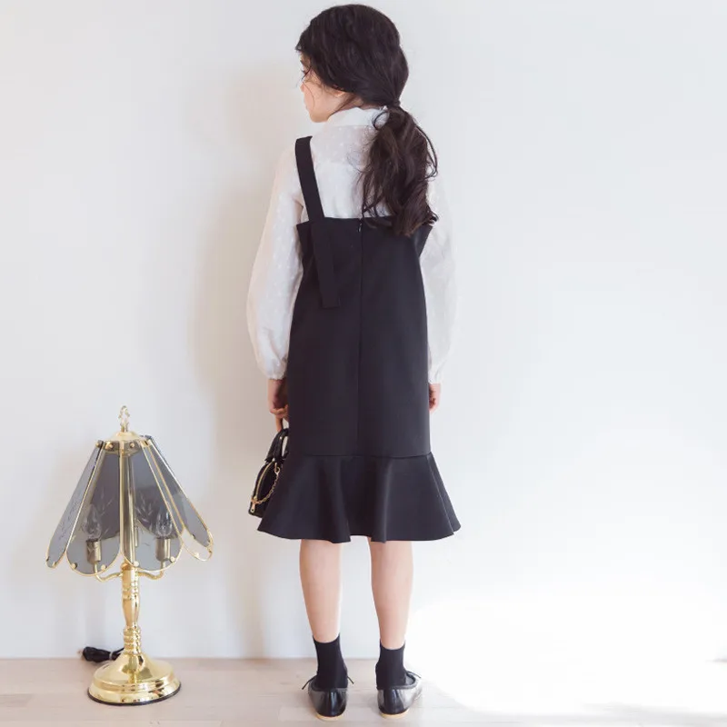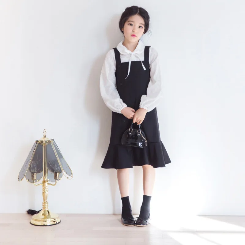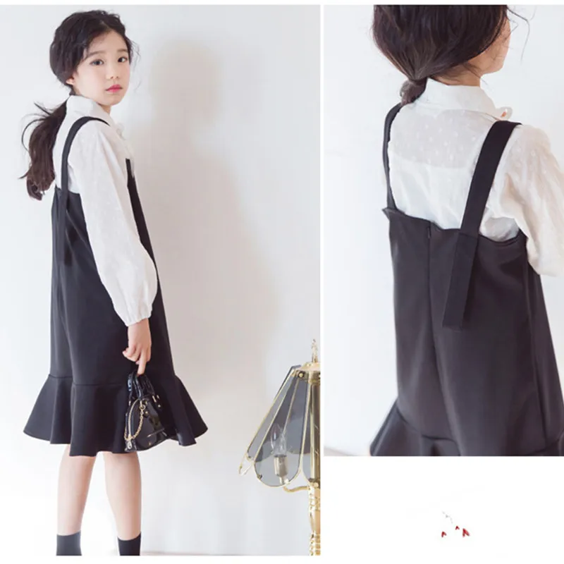 Product Name: 4 zu 14 jahre kinder teenager mädchen herbst herbst schwarz polyester jumpersuit kleid kinder mädchen mode weste flare insgesamt kleid