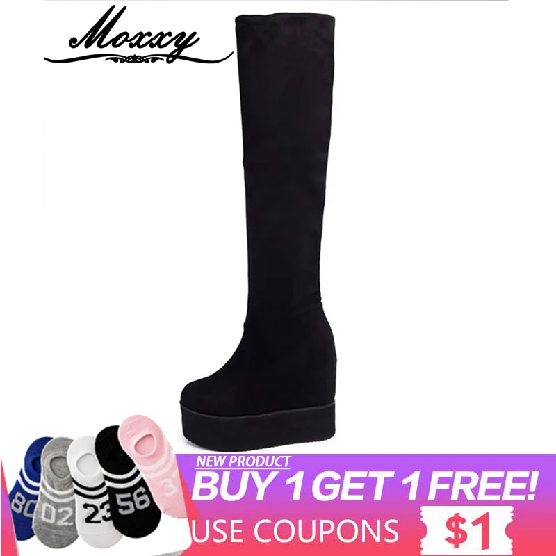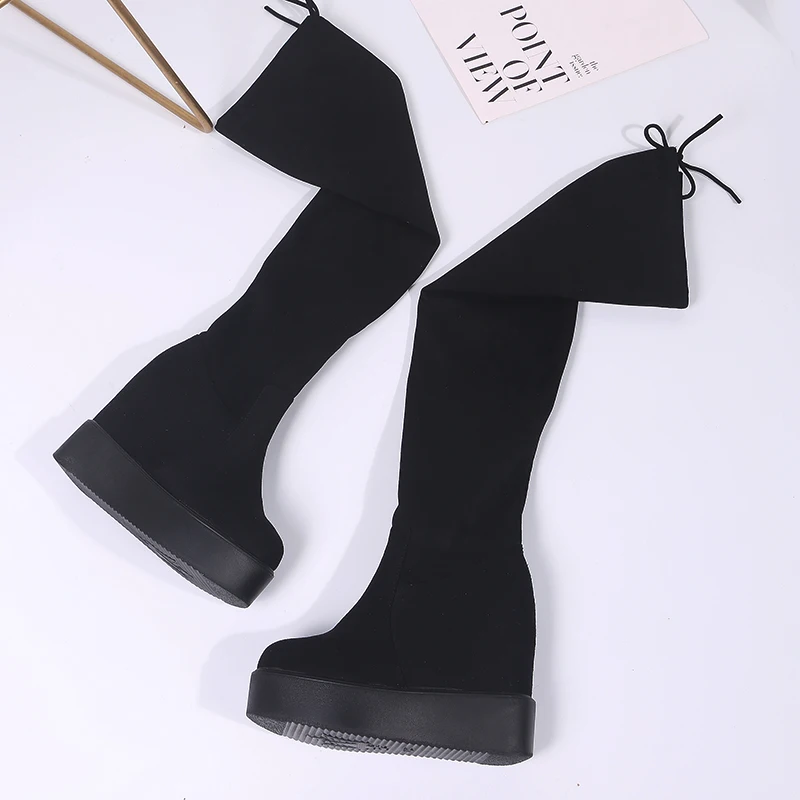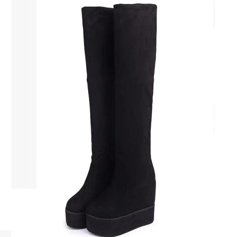 Special Offer Sexy Oberschenkel Hohe Stiefel Winter Plattform Stiefel Frauen Über das Knie Stiefel Wildleder Lange Stiefel High Heels Pelz Plüsch Keil schuhe Frau Discount 40% Today!