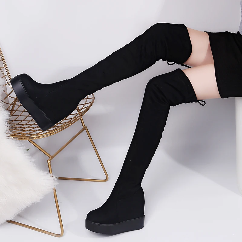 Product Name: Sexy Oberschenkel Hohe Stiefel Winter Plattform Stiefel Frauen Über das Knie Stiefel Wildleder Lange Stiefel High Heels Pelz Plüsch Keil schuhe Frau