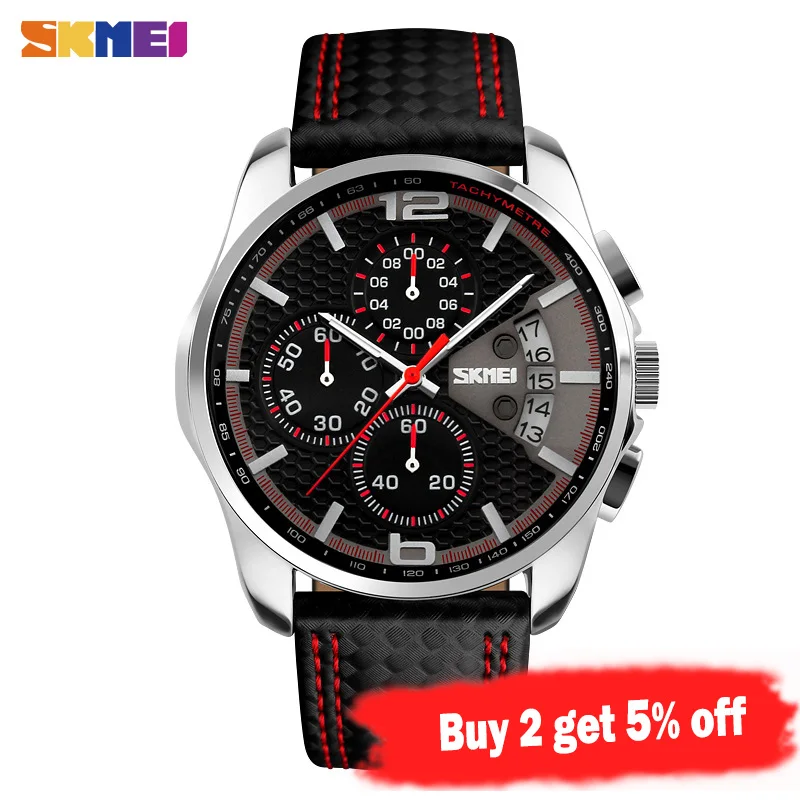 . (40% Rabatt) Kaufen Günstig SKMEI Mode Sport Herren Uhren Top Brand Luxus Lederband 5Bar Wasserdicht Quarz Armbanduhren Relogio Masculino 9106 Preise Online.