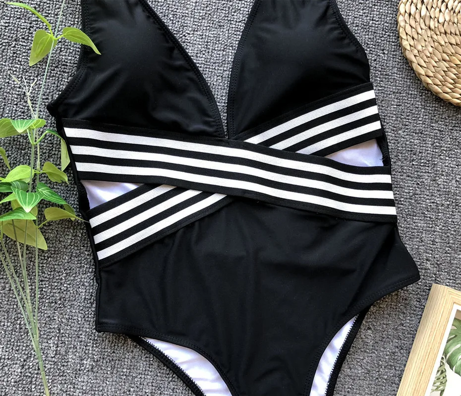 Special Offer Ariel Sarah 2019 Badpak Halter One Piece Badeanzug Frauen Striped Bademode Body Sexy Stück Bademode Strand Tragen Monokini Discount 44% Today!