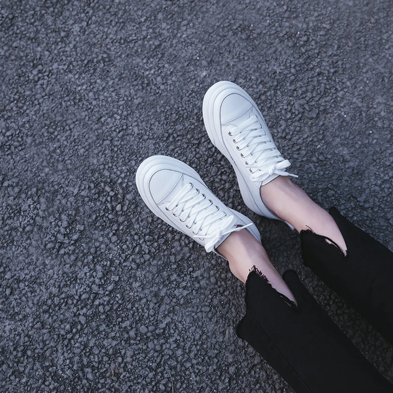 Special Offer VANGULL Echtem Leder schuhe 2019 frühjahr und sommer kuh leder flachen boden faulenzer weißen schuhe ladies turnschuhe Vulkanisierte schuhe Discount 45% Today!