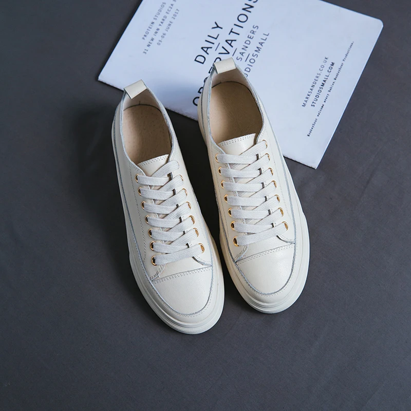 . (45% Rabatt) Kaufen Billig VANGULL Echtem Leder schuhe 2019 frühjahr und sommer kuh leder flachen boden faulenzer weißen schuhe ladies turnschuhe Vulkanisierte schuhe Preise Online.