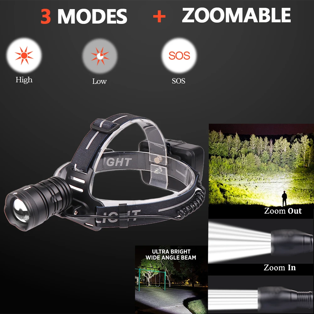 Product Name: Mächtigsten 6600mA 50W XHP70.2 Led Scheinwerfer Wasserdicht Zoombare Scheinwerfer leistungsstarke kopf lampe Kopf licht laterne geschenk box