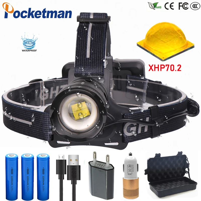 . (45% Rabatt) Kaufen Günstig Mächtigsten 6600mA 50W XHP70.2 Led Scheinwerfer Wasserdicht Zoombare Scheinwerfer leistungsstarke kopf lampe Kopf licht laterne geschenk box Preise Online.