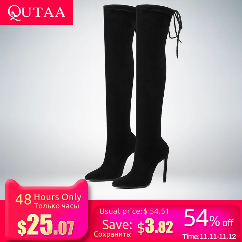 Special Offer QUTAA 2020 Frauen Stiefel Spitze Bis Über Das Knie Stiefel Mode Spitz Dünne High Heel Winter Frau Schuhe Lange boot Größe 34 43 Discount 47% Today!