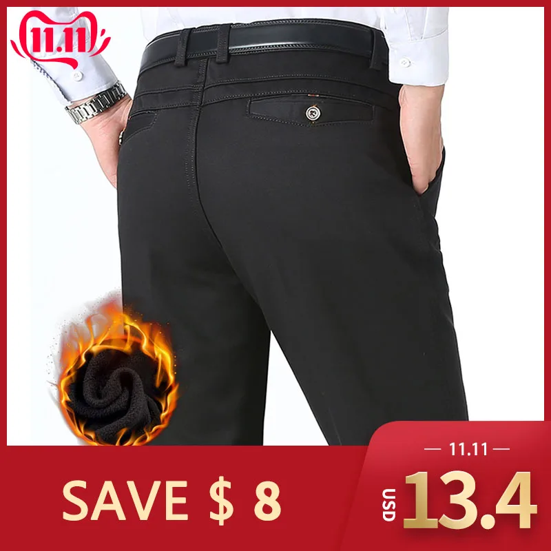 Special Offer Herbst Winter Männer Warme Fleece Klassische Schwarz Baumwolle Hosen Herren Business Lose Lange Hosen Qualität Casual Arbeit Hosen Overalls Discount 50% Today!