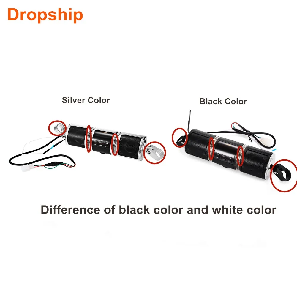 Product Name: MT487 12V Schwarz Weiß Motorrad MP3 Musik Player Bluetooth Stereo Lautsprecher FM Radio Mit Led anzeige Wasserdicht