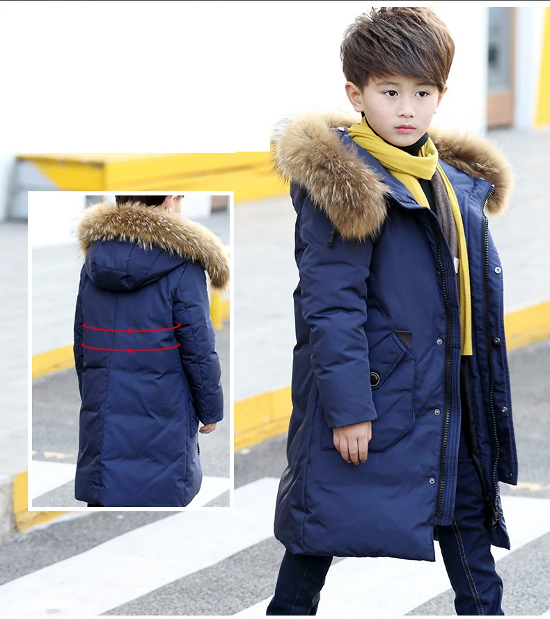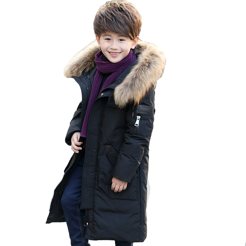 Product Name: Schiff Form Russische 30 Grad Dicke Warme Unten Jacken Winter Jungen Ente Unten Mäntel Kinder Natürliche Pelz Lange Mit Kapuze oberbekleidung