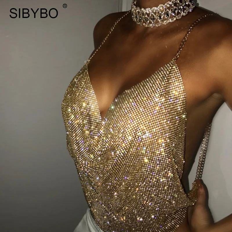 Special Offer Sibybo Halter Handmade Shiny Strass Crop Top Backless Sommer Strand Chic Party Bralette Gestellte Sexy Frauen Tank Top Discount 35% Today!