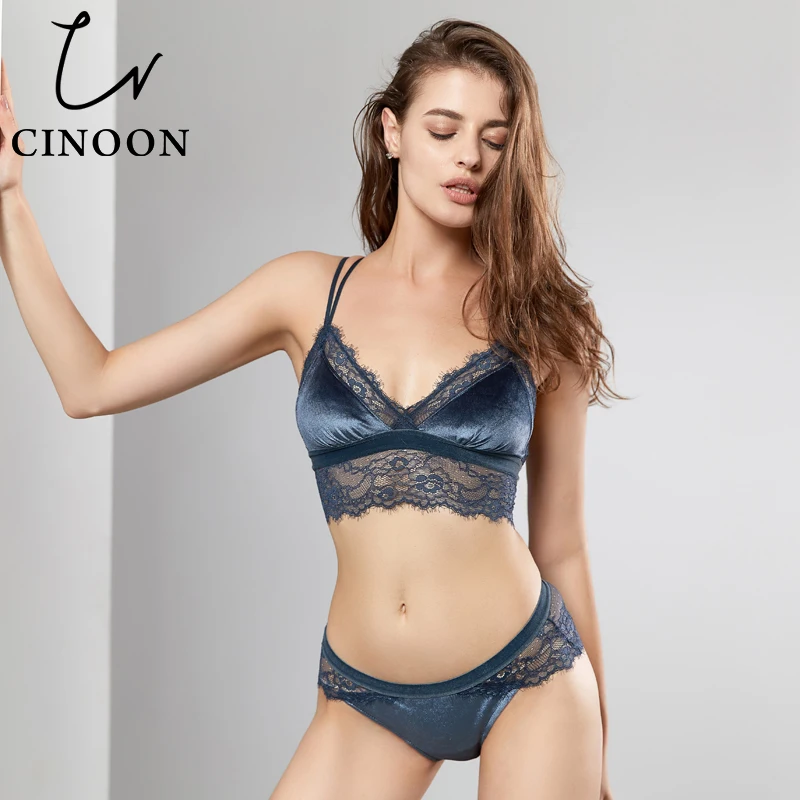 Special Offer CINOON Neue Mode Frauen sexy Samt Bh set Unterwäsche Push up büstenhalter wireless Dessous Wimpern spitze bralette set Discount 40% Today!