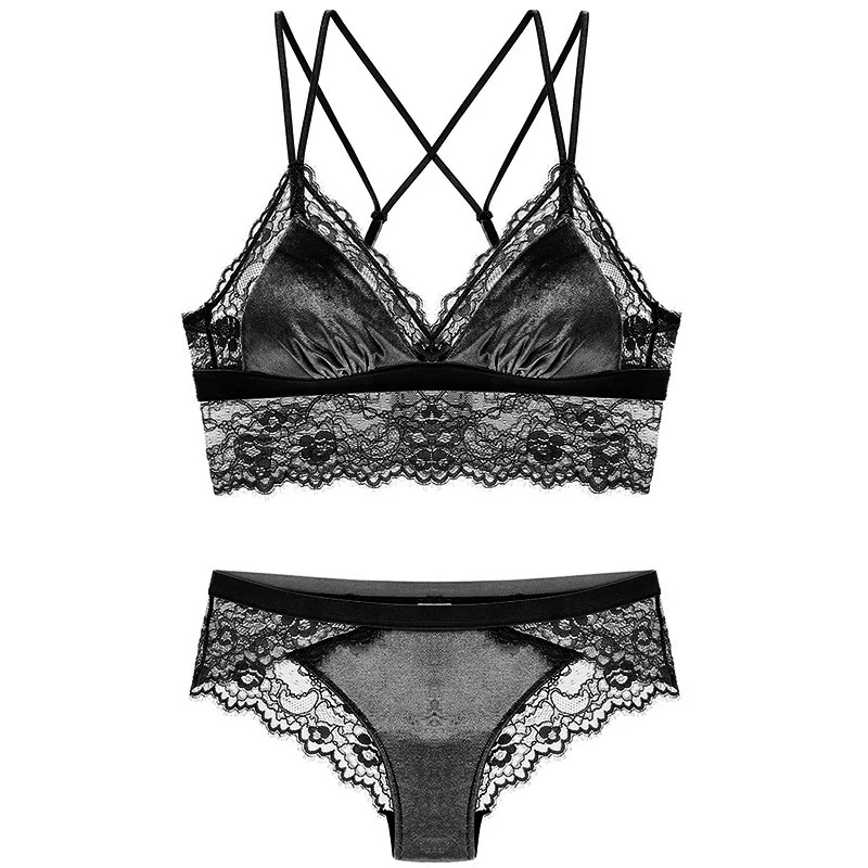 Product Name: CINOON Neue Mode Frauen sexy Samt Bh set Unterwäsche Push up büstenhalter wireless Dessous Wimpern spitze bralette set