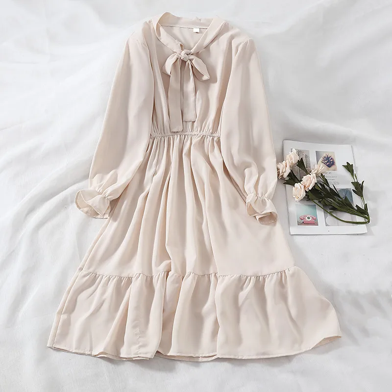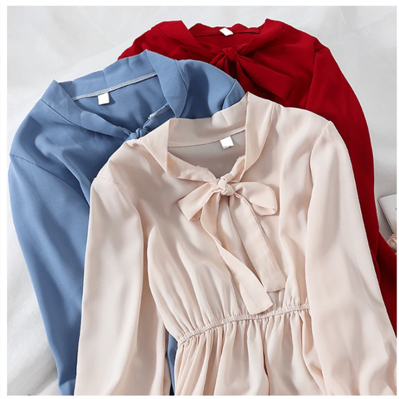Product Name: Koreanische Frauen Bogen A Line Kleid Weibliche Schmetterling Sleeve V ausschnitt 2019 Party Kleid Damen Spitze Elegante Schlanke Mitte Kalb Kleider vestidos