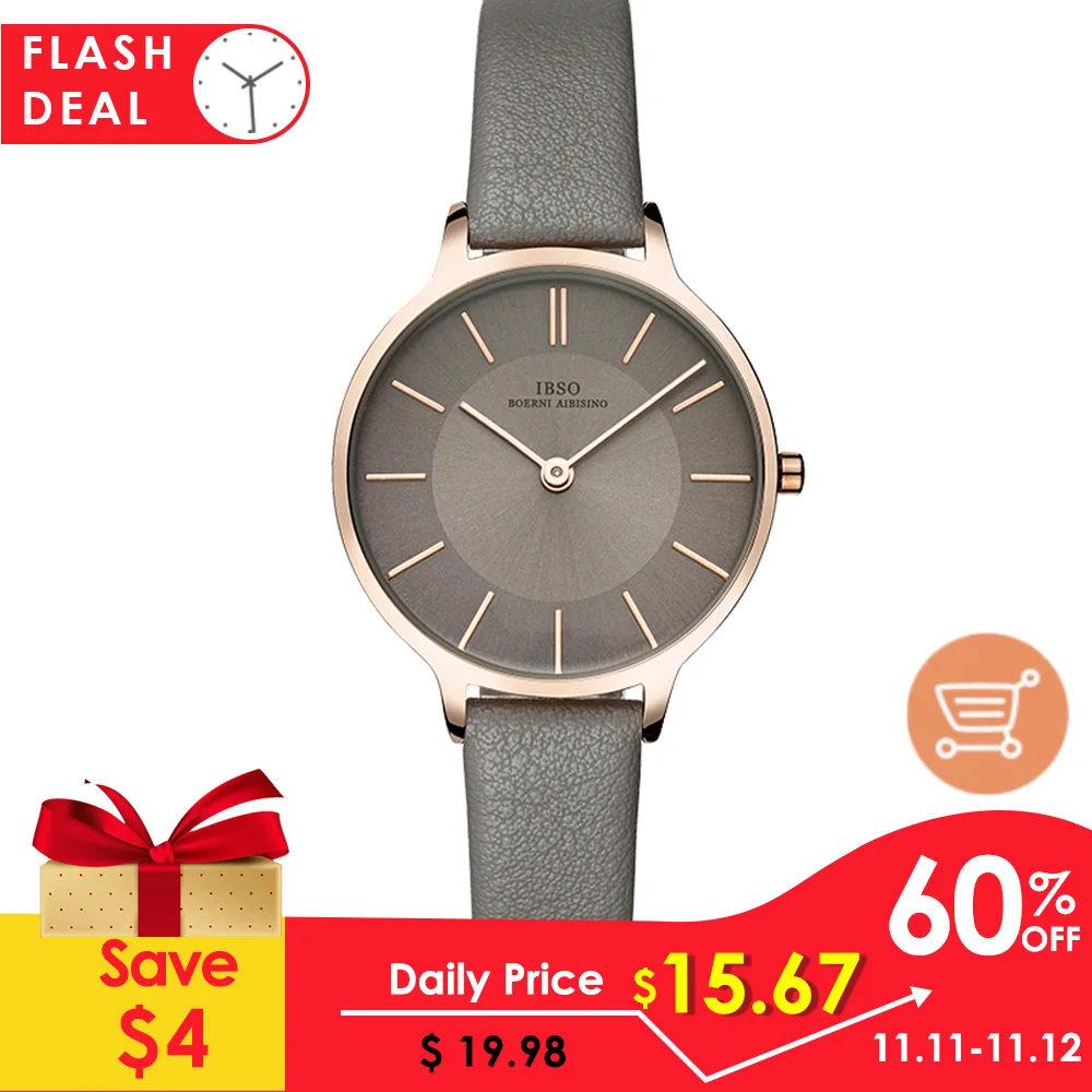Special Offer IBSO Marke 8 MM Ultra Dünne Quarzuhr Frauen Echtes Leder Frauen Uhren 2019 Luxus Damen Uhr Montre Femme Discount 50% Today!