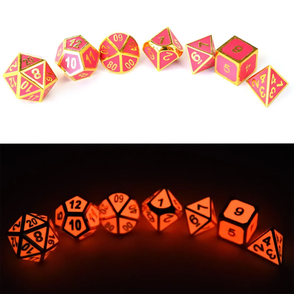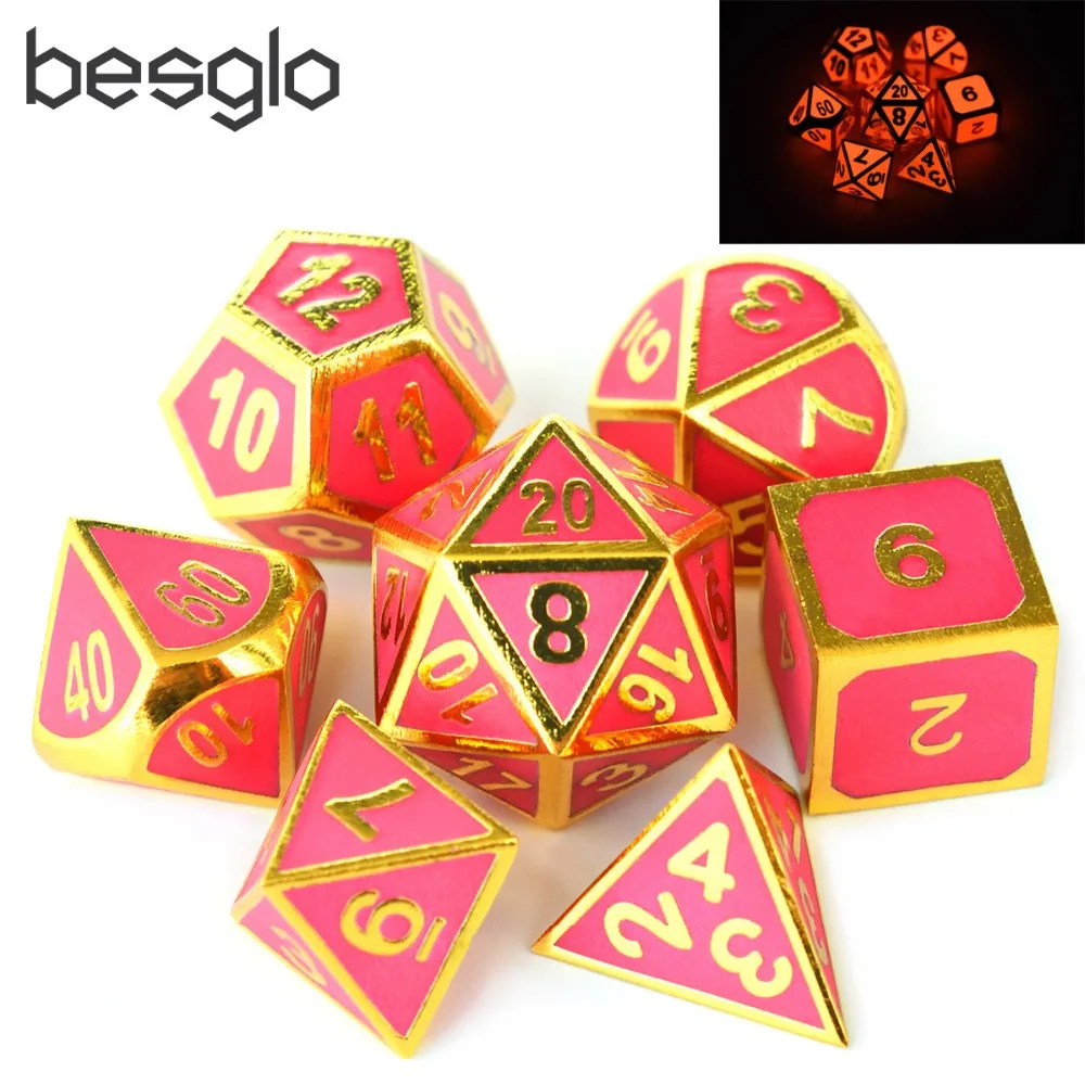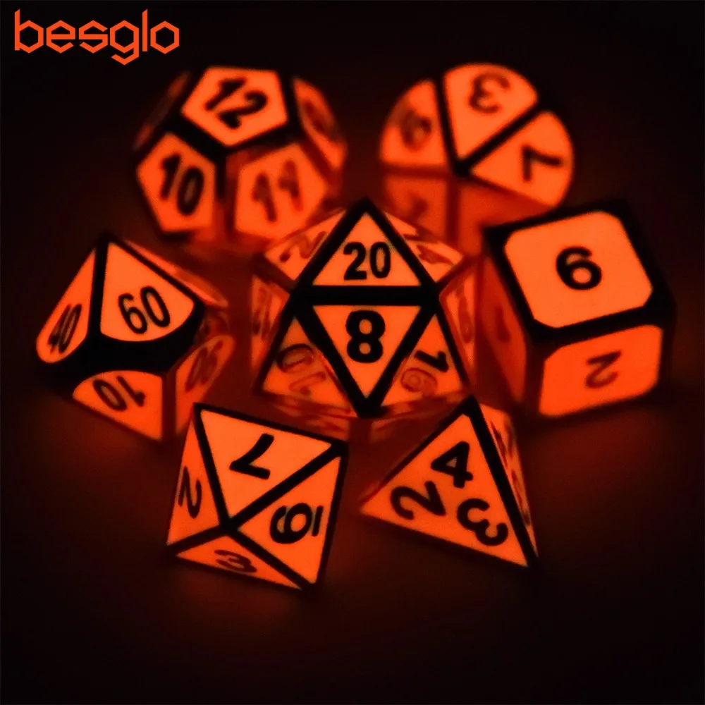 Special Offer Glow in The Dark Solide Metall Polyhedral D D Würfel Set von 7 mit Samt Beutel für RPG MTG board Spiele Discount 0% Today!