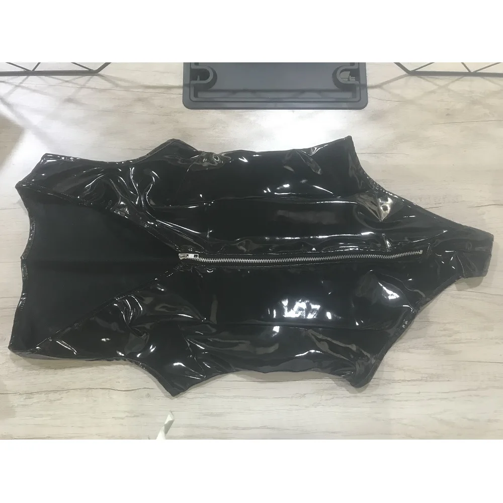 Product Name: Latex Zipper Wetlook teddies Gothic Faux Leder Body ärmel Fetisch PVC Teddy Dessous Erotische Clubwear Fetisch Overall