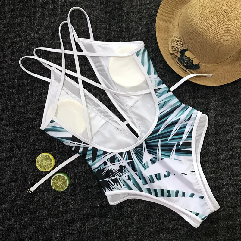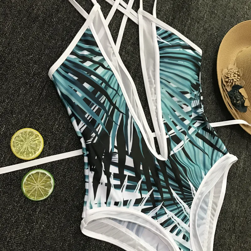 Special Offer Ariel Sarah 2019 Neue Netz Einem Stück Badeanzug Body Stück Bademode Sexy Blatt Druck Bademode Halter Schwimmen Anzug für Frauen Discount 45% Today!