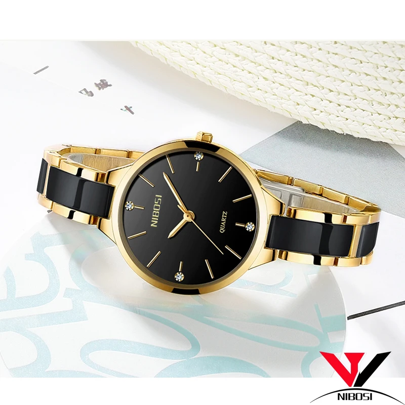 Product Name: Relogio Feminino NIBOSI Frauen Uhren Wasserdicht Top Marke Luxus Uhr Frauen Mit Keramik Und Metall Strap Uhren Para Mujer