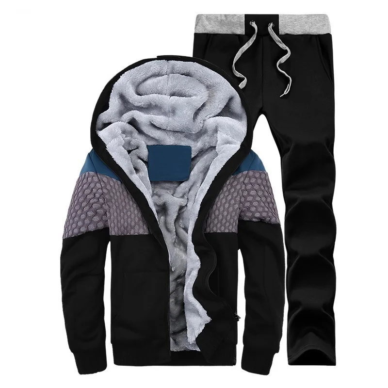 Product Name: Trainingsanzug Männer Sporting Fleece Starke Mit Kapuze Marke Kleidung Lässig Track Anzug Männer Jacke + Hose Warme Pelz Innen Winter sweatshirt