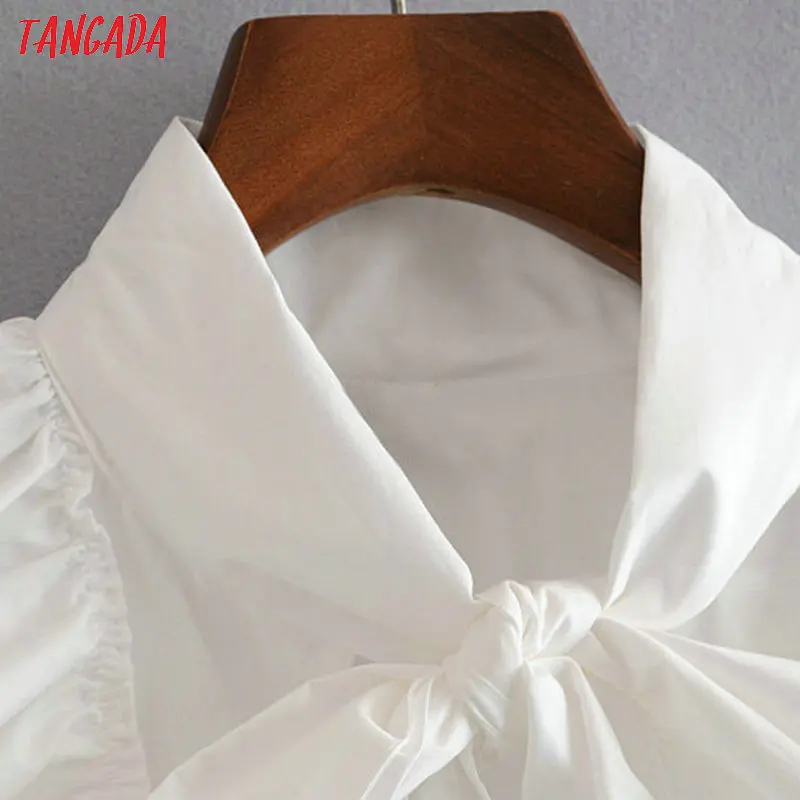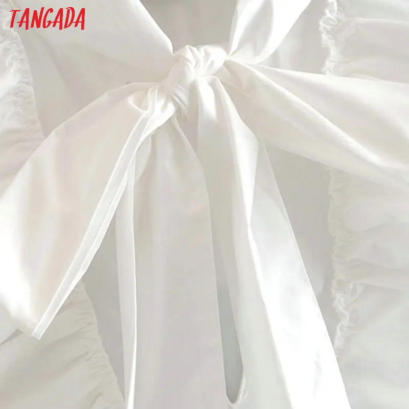 Special Offer Tangada frauen rüschen weiß shirts baumwolle langarm solide fliege neck elegante büro damen arbeiten tragen blusen 3H323 Discount 30% Today!