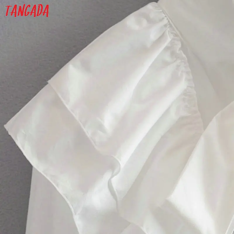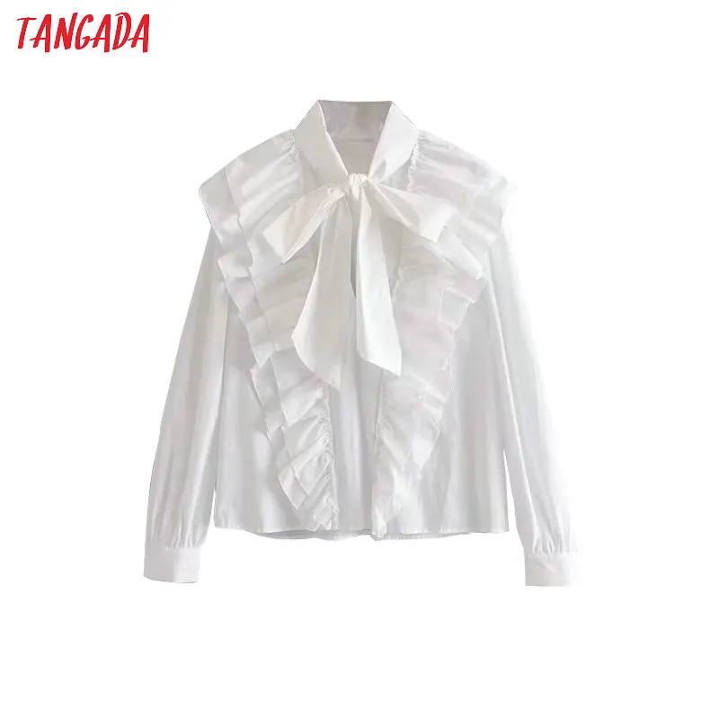 Product Name: Tangada frauen rüschen weiß shirts baumwolle langarm solide fliege neck elegante büro damen arbeiten tragen blusen 3H323