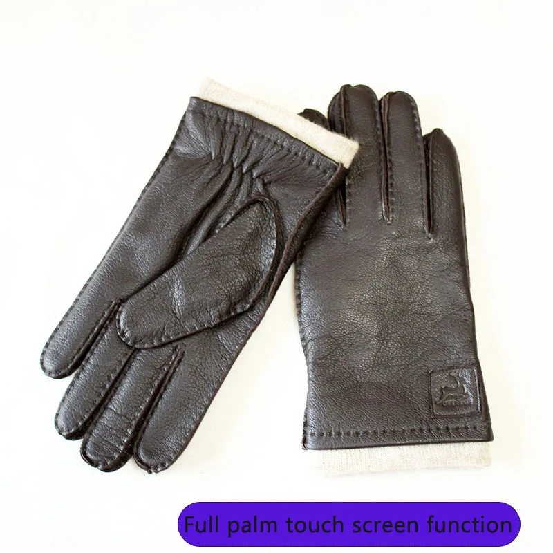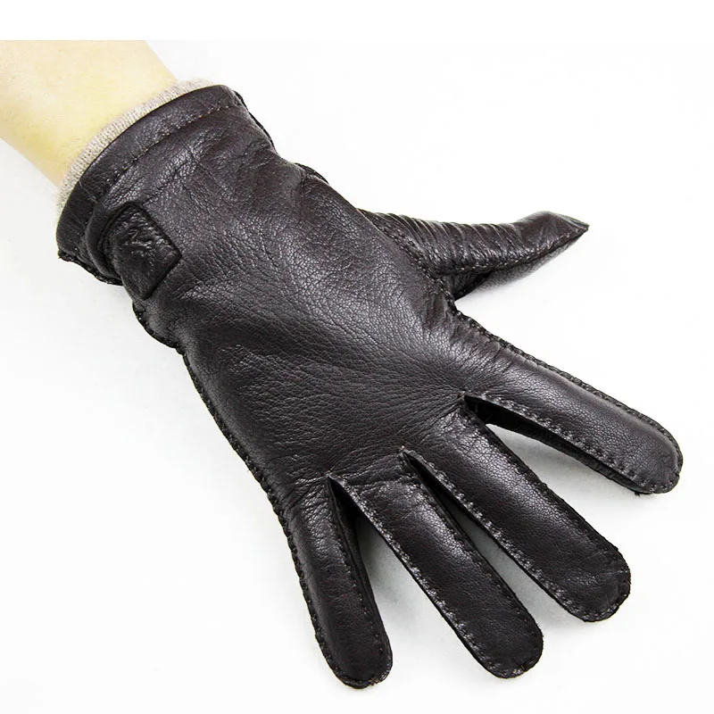 Product Name: 2019 neue hirschleder handschuhe männer hand genäht gerade stil dunkelbraun wolle futter herbst warme leder handschuhe freies verschiffen