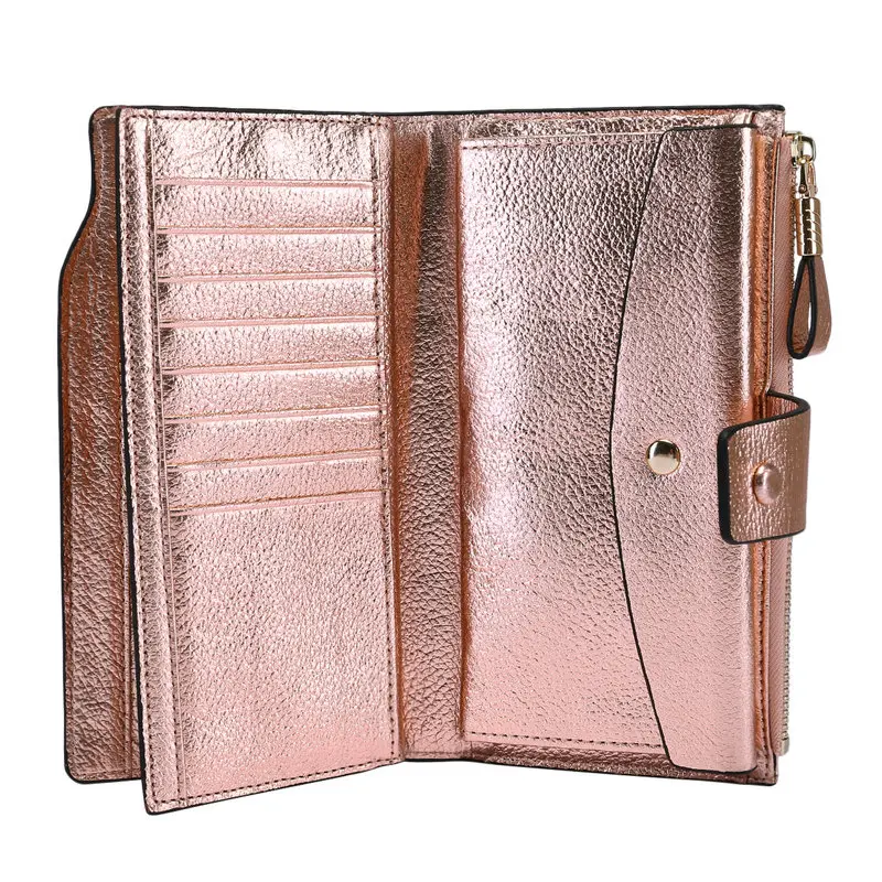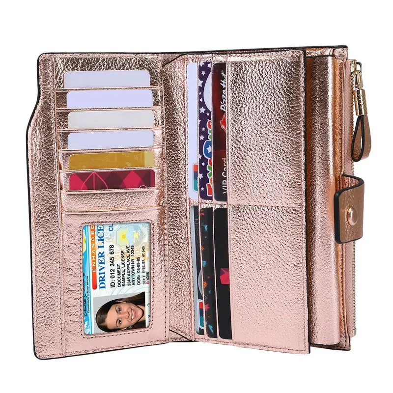 Product Name: ITSLIFE 2019 Frauen Echtes Leder RFID Sperrung Funktionale Brieftasche Zipper Lange Glint Karte Halter Damen Geldbörse Iphone