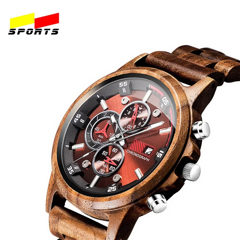 . (0% Rabatt) Kaufen Billig QW Heißer Verkauf Bambus Marke Chronograph Großhandel Custom Männer Holz Sport Uhr Preise Online.