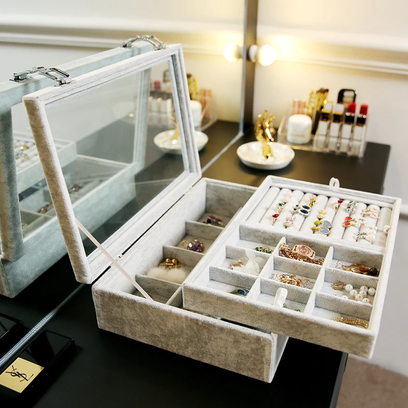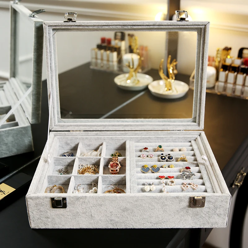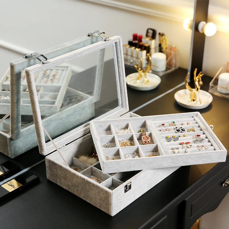 . (10% Rabatt) Kaufen Günstig ANFEI Schmuck Display Samt Grau Tragetasche mit Glas Abdeckung Schmuck Ring Display Box Tray Halter Lagerung Box OrganizerZ1511 Preise Online.