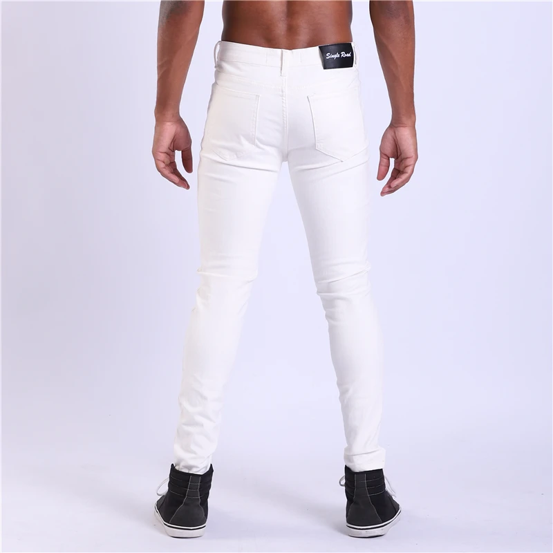 Product Name: Einzel Road Weiße Jeans Männer 2019 Biker Herren Abendessen Dünne Jeans Streetwear Stretch Denim Hosen Mann Slim Fit Marke Jeans männlichen