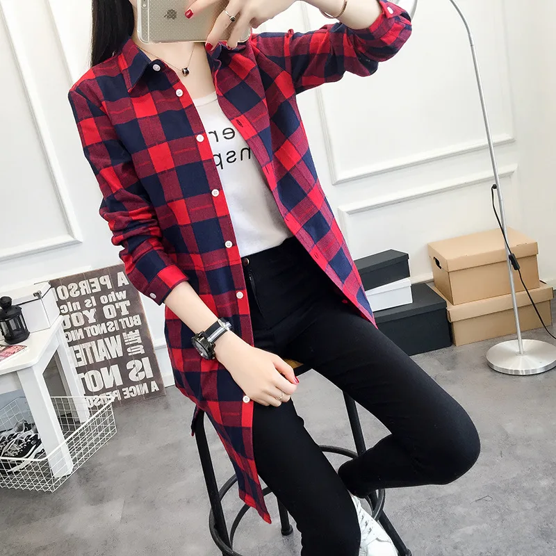 Special Offer EYM Marke Herbst Frauen Lange Hemd Freundin Stil Baumwolle Casual Langarm Rot Flanell Plaid Shirt Blusen Weibliche Tops Blusas Discount 20% Today!