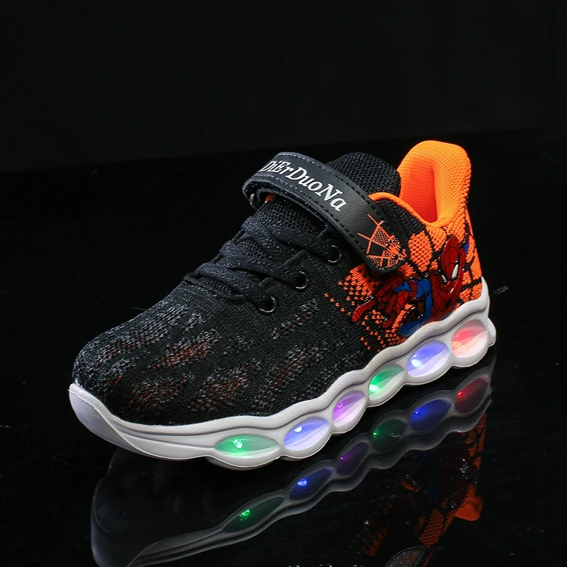 Product Name: Lsysag LED Kinder Schuhe Spiderman Glowing Turnschuhe Jungen Schuhe Fiber Optic Schuhe Chaussure Enfant Spor Ayakkabi Buty LED Kinder