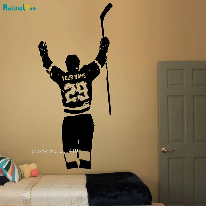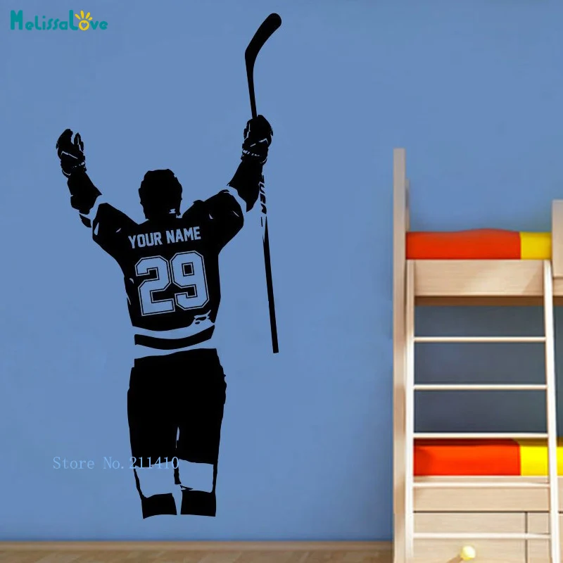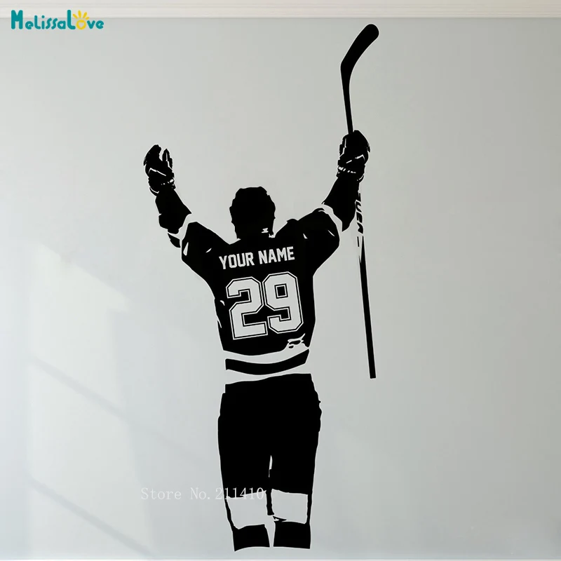 . (25% Rabatt) Billige Kaufen Cutom Hockey Wand Aufkleber Personalisierte Name und Nummer Sport Player Schuss Vinyl Aufkleber Wohnkultur für Kinder Boy Zimmer Wandmalereien YT998 Preise Online.