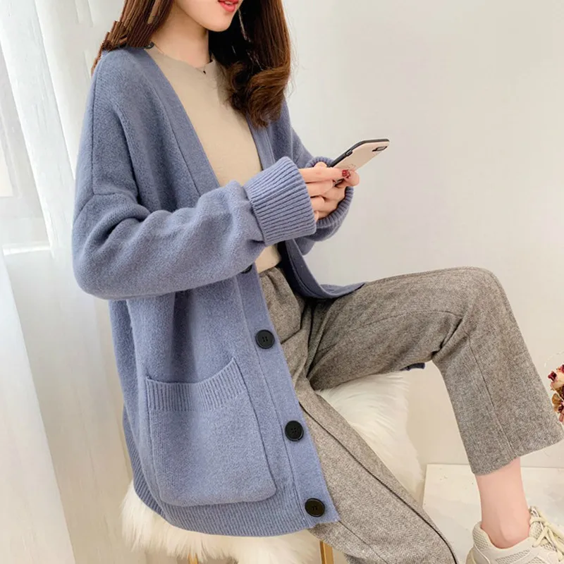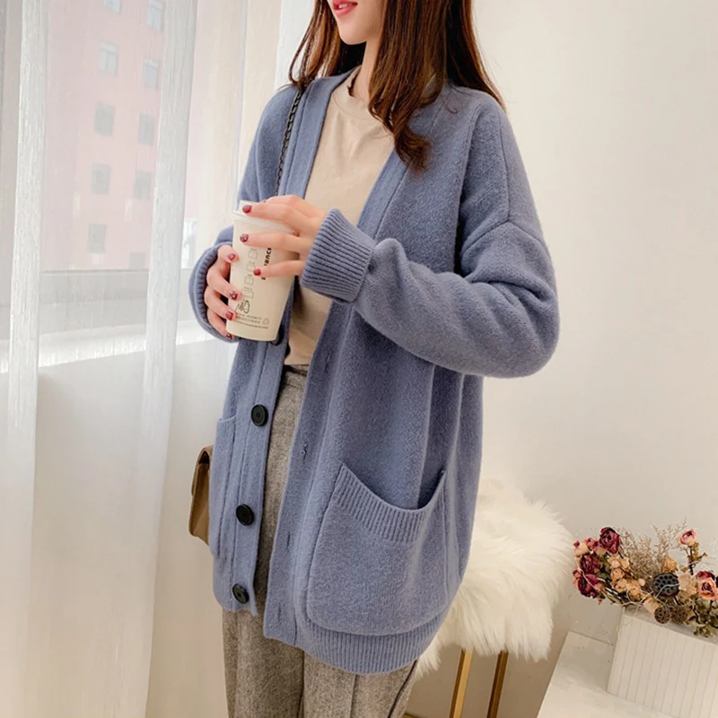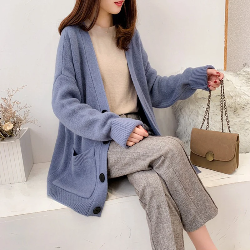 Special Offer PEONFLY Midi Lange Pullover Strickjacke Für Frauen 2019 Herbst Winter Tasche Langarm Strickjacke Weibliche Gestrickte Jacke Frauen Rot Blau Discount 25% Today!
