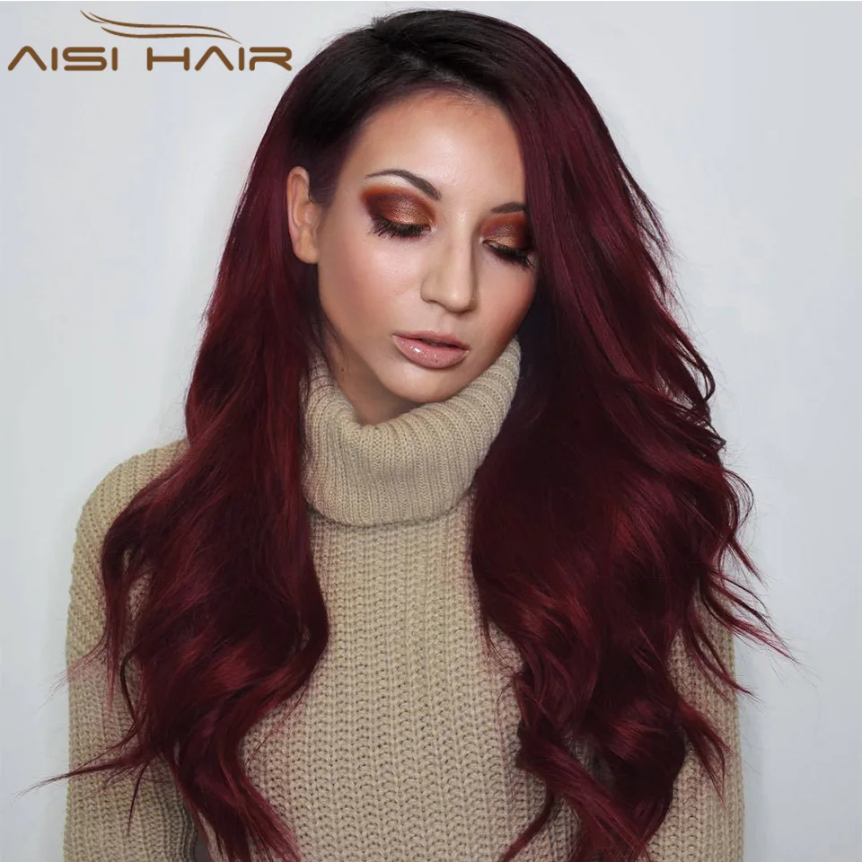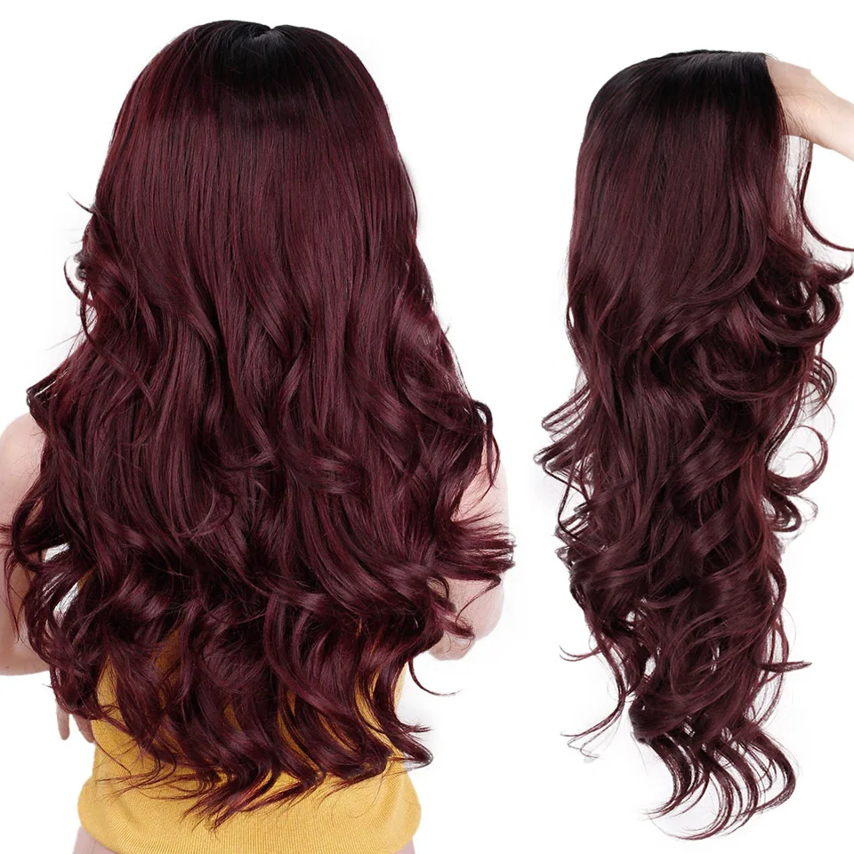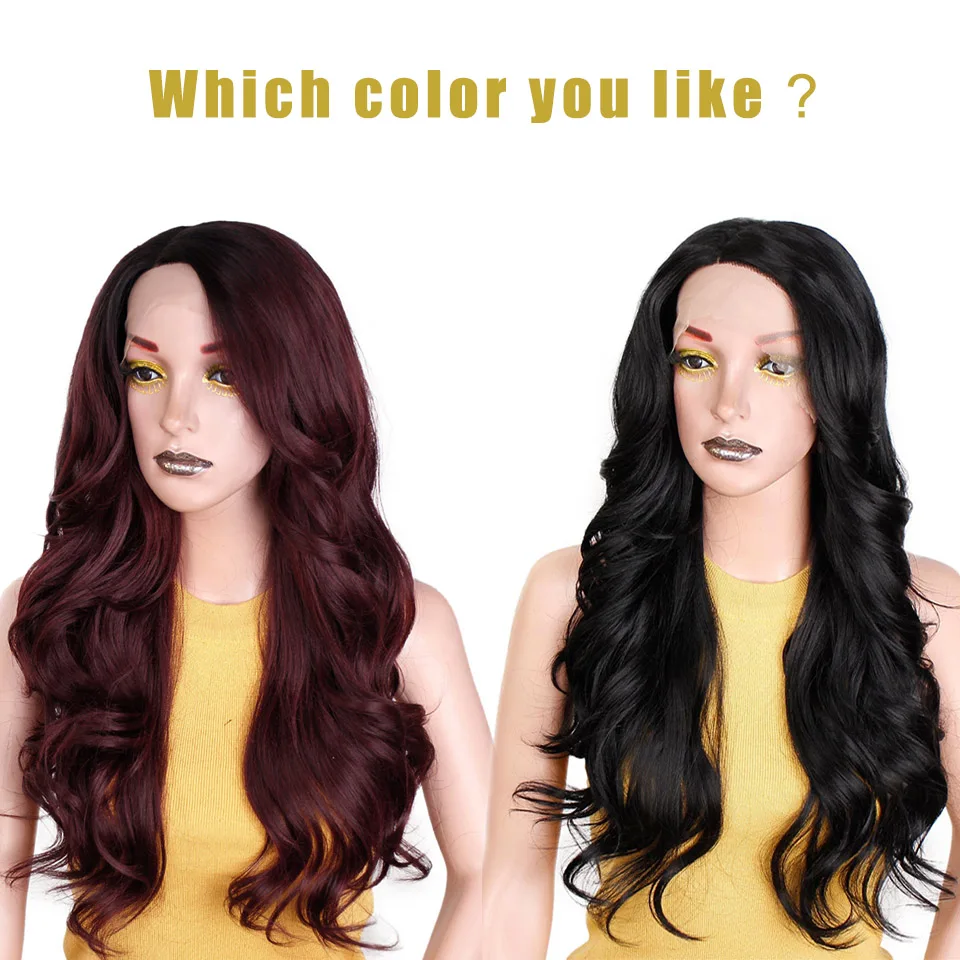 Product Name: ICH der eine perücke 24 zoll Ombre Dunkelrot Gewellte Lange Perücke Perucas vordere spitze Haar Synthetische Spitze Perücken für schwarz Frauen Welle perücke
