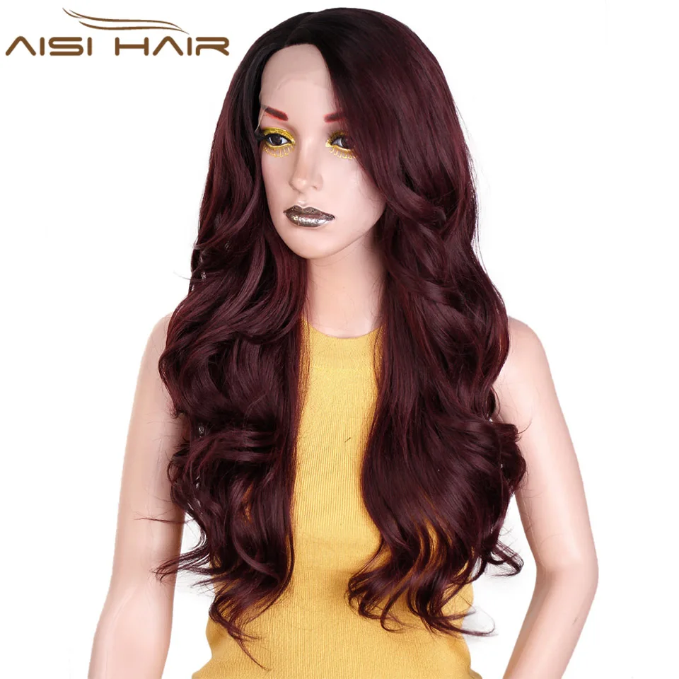 Special Offer ICH der eine perücke 24 zoll Ombre Dunkelrot Gewellte Lange Perücke Perucas vordere spitze Haar Synthetische Spitze Perücken für schwarz Frauen Welle perücke Discount 28% Today!