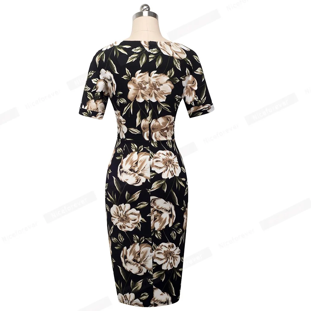 Special Offer Nizza Immer Elegant Vintage Floral Print Casual Arbeit vestidos Business Büro Bodycon Mantel Frauen Kleid B513 Discount 40% Today!