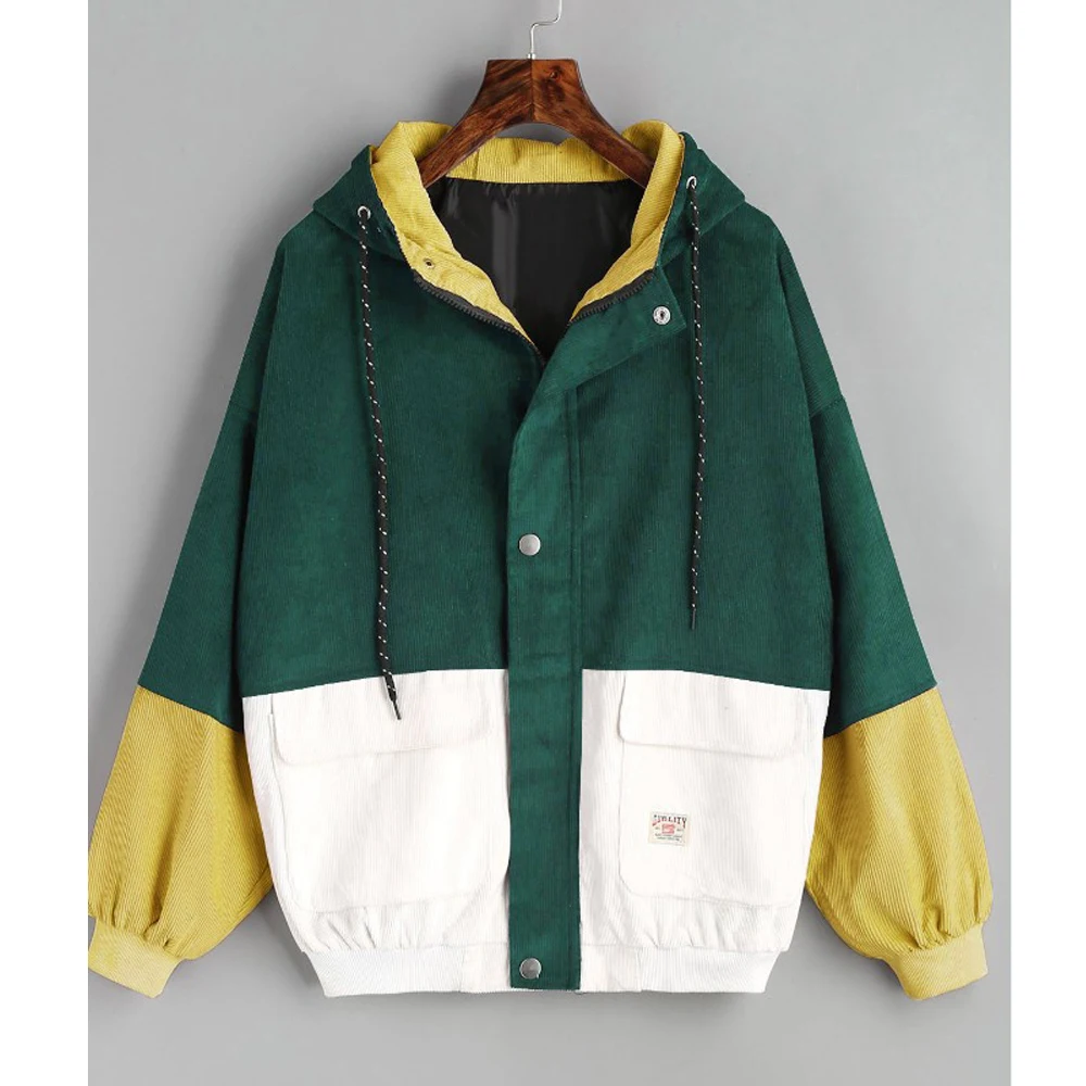 Special Offer Jocoo Jolee Farbe Block Langarm Cord Frauen Jacke Patchwork Kordelzug Hit Farbe Herbst Jacke Plus Größe Frauen Mantel Discount 40% Today!