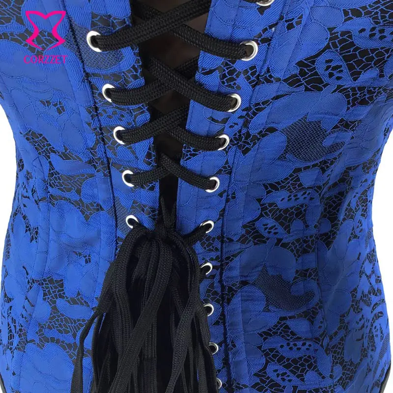 Special Offer Corzzet Steampunk Blau Spitze Overbust Korsett Top Bustier Sexy Erotische Gothic Burlesque Taille Corsetto Mieder Korsett Für Frauen Discount 40% Today!