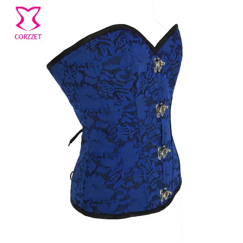 Product Name: Corzzet Steampunk Blau Spitze Overbust Korsett Top Bustier Sexy Erotische Gothic Burlesque Taille Corsetto Mieder Korsett Für Frauen
