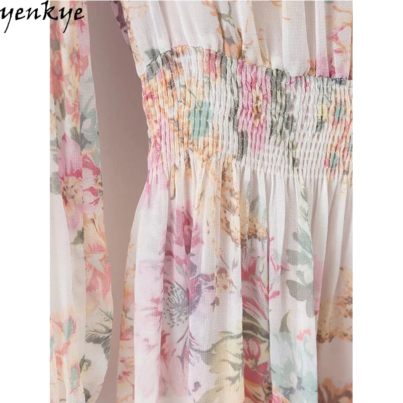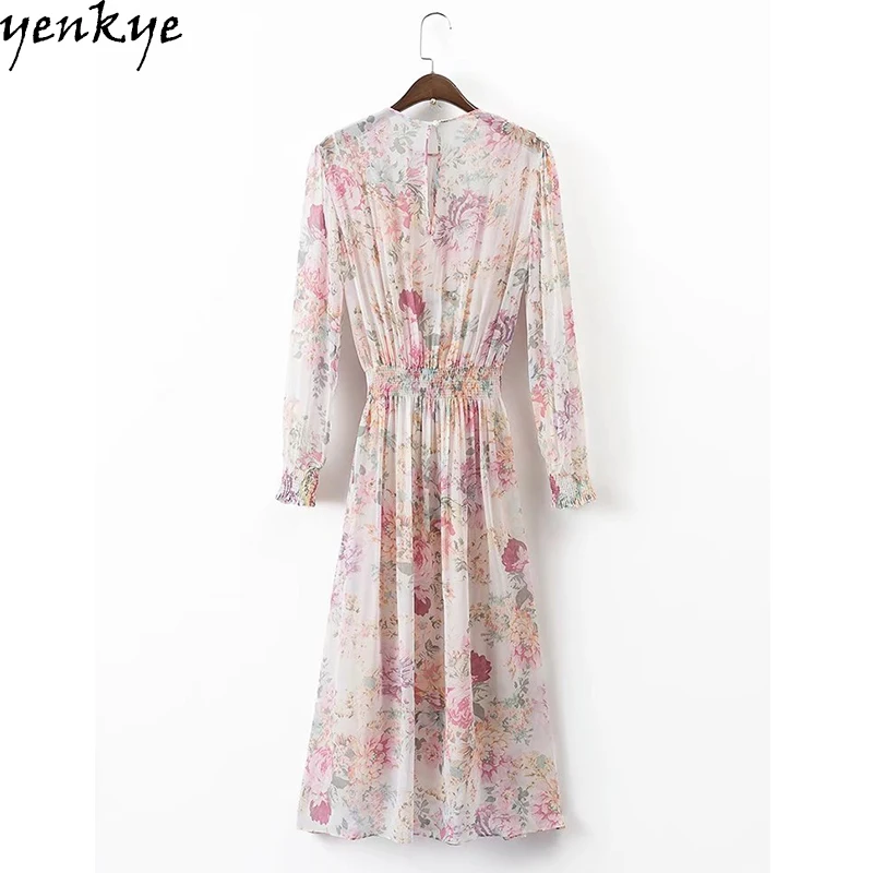 Special Offer Herbst Kleid Chiffon Süße Frauen O Hals Langarm Floral Kleid Elastische Taille Casual Midi Kleid Marke Vestidos Mujer XDWM375 Discount 43% Today!
