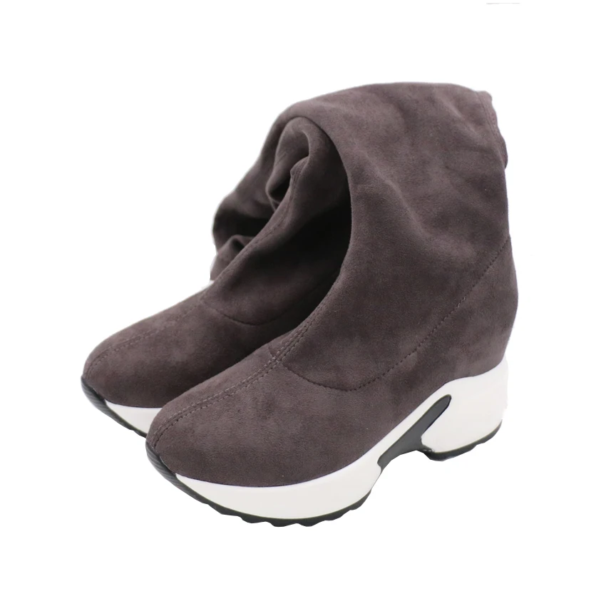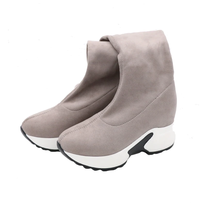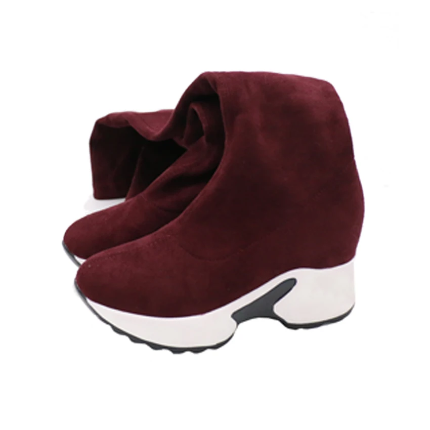 Product Name: ESVEVA 2020 Über Das Knie Stiefel Winter Frauen Stiefel Keil Hohe Ferse Slip Auf Elastische Flock Motorrad Stiefel Plattform Größe 34 43