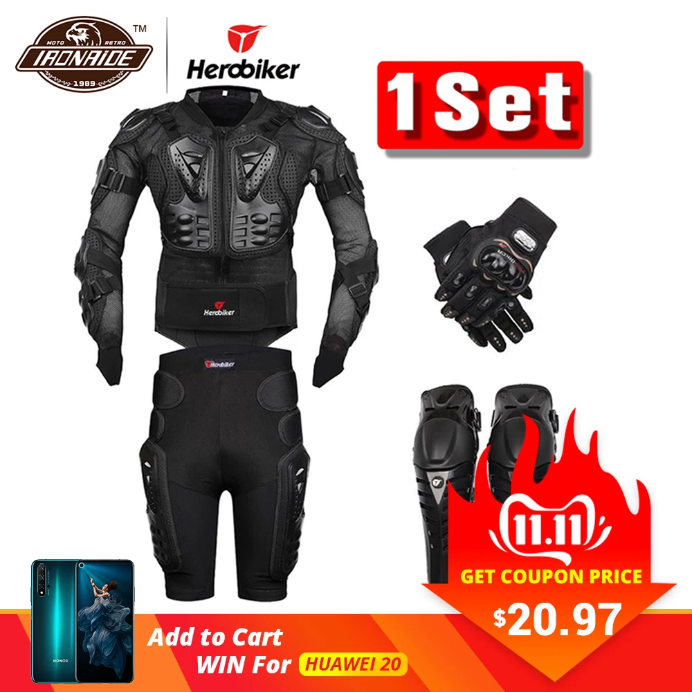 . (49% Rabatt) Kaufen Günstig Neue Moto Motocross Racing Motorrad Körper Rüstung Schutz Getriebe Motorrad Jacke + Shorts Hosen + Schutz Knie Pads + Handschuhe schutz Preise Online.