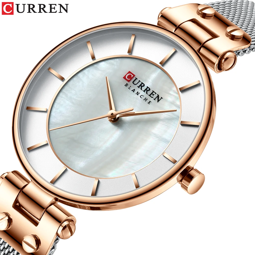 Product Name: CURREN Kreative Einfache Quarzuhr frauen Kleid Stahl Mesh Uhren Neue Uhr Damen Armband Uhr relogios feminino