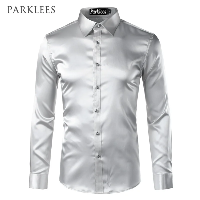 . (50% Rabatt) Günstige Kaufen Seide Hemd Männer 2017 Satin Glatte Männer Solide Smoking Hemd Business Chemise Homme Casual Slim Fit Glänzenden Gold Hochzeit Kleid shirts Preise Online.