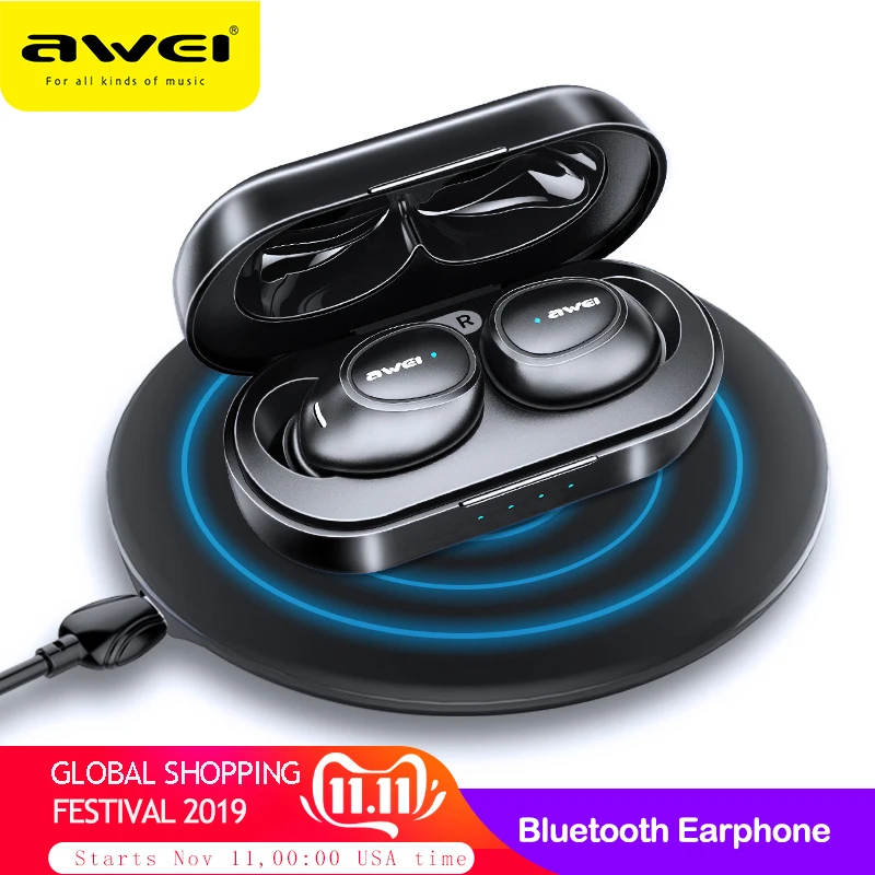 Special Offer AWEI T6C TWS Bluetooth 5,0 Kopfhörer Wahre Drahtlose Ohrhörer 3D Stereo Kopfhörer Für iPhone Xiaomi Headset Mit Dual Mic Discount 50% Today!
