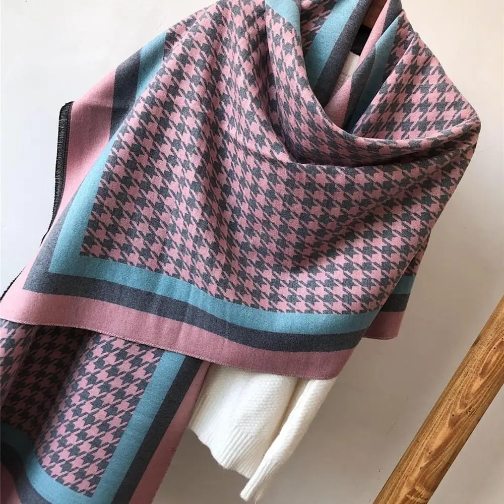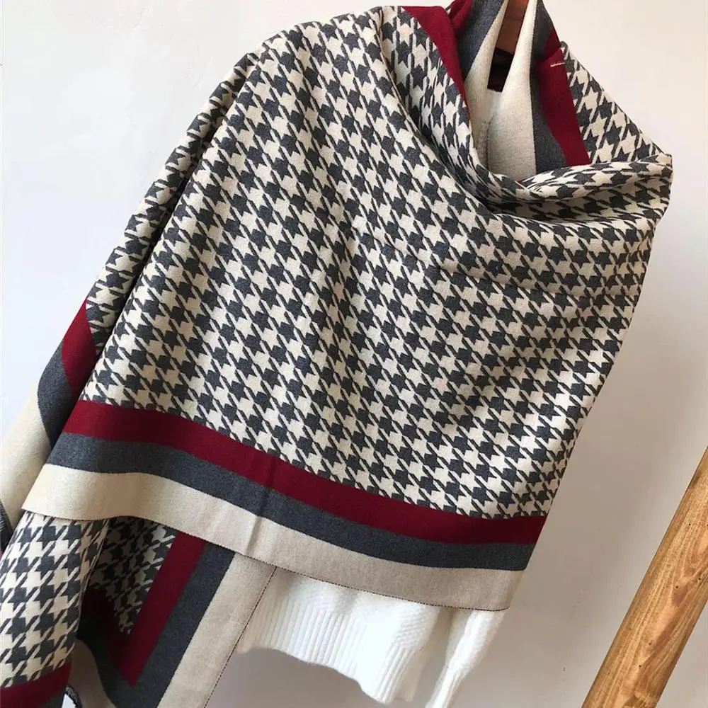 Product Name: Frauen Schal Winter Frau Plaid Schals Wrap Schal Dicke frauen Schal Warme Kaschmir Wolle Baumwolle Gemischt Gebürstet Poncho