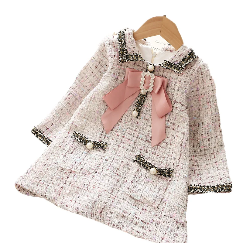 Product Name: Woolen Bunte Mädchen elegante Kleid Kinder Prinzessin gitter Kleider kid kleinkind Mädchen Volle Hülse Kleid Kinder Kleidung