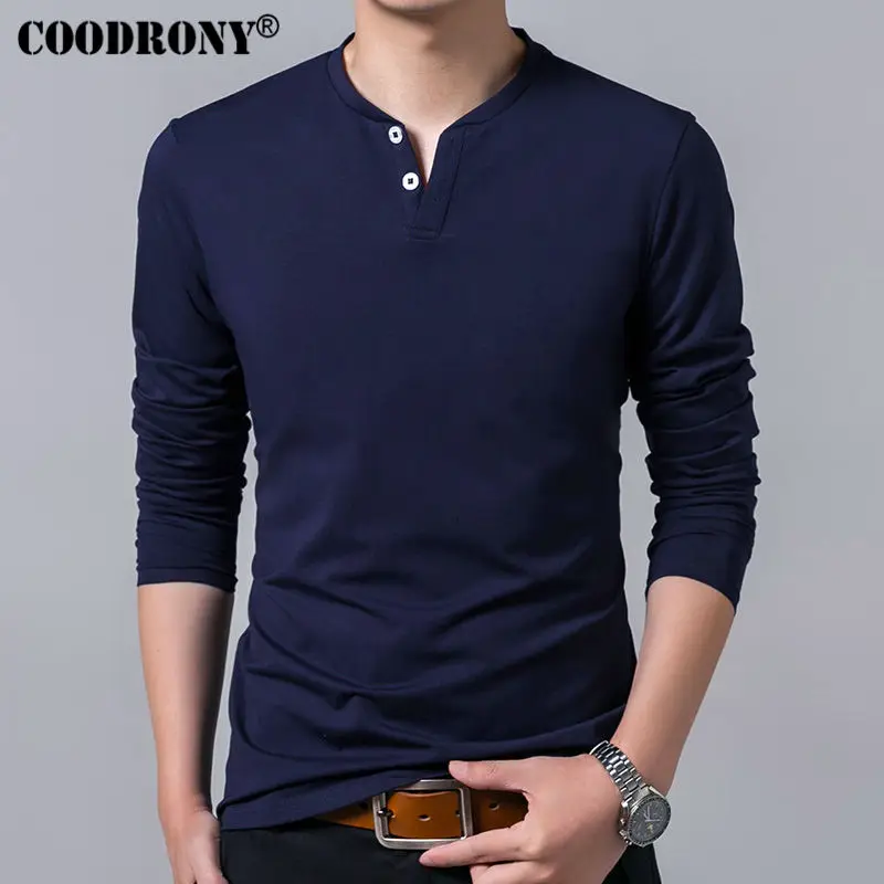Special Offer COODRONY T Shirt Männer 2019 Frühling Herbst Neue Langarm Henry Kragen T Shirt Männer Marke Weiche Aus Reiner Baumwolle Slim Fit t Shirts 7625 Discount 45% Today!
